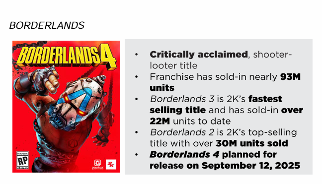 Obviously, 2K and Take-Two have regarded Borderlands as a key link in their financial strategy. It is more than just a simple shooting game, and it has grown into one of the pillars of the company's business. In the investor’s presentation, the game was listed as a top-profit work, demonstrating the company’s confidence in the future release of the series.