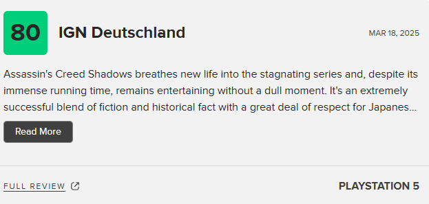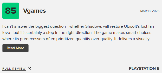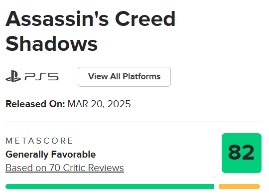 "Assassin's Creed: Shadow" M Station 82 points: A step in the right direction!