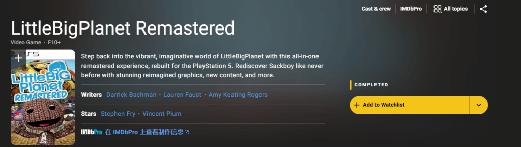 According to IMDB, Sony PlayStation's first-party classic game "Little Big Planet" may be released in a replica version and will be launched on the PS5 platform.