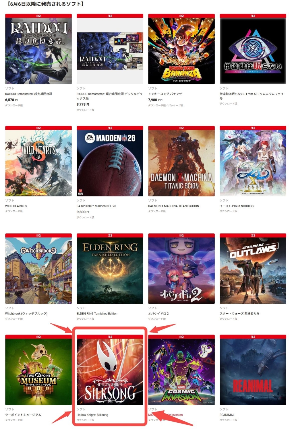 Nintendo's official website shows that "Silk Song" will not be released after at least June 6