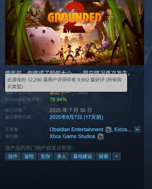 At the end of July, "Survival in Confinement 2" took the selling point of "increasing volume without increasing price", and the domestic first launch price was 98 yuan, which was even 20 yuan lower than the official version of the previous work. Although the number of online users of the game hit a record high in the series, its reputation after the release was not ideal. At present, the positive review rate of this work in the Simplified Chinese area is only 55%, and the overall positive review rate is 76.94%.