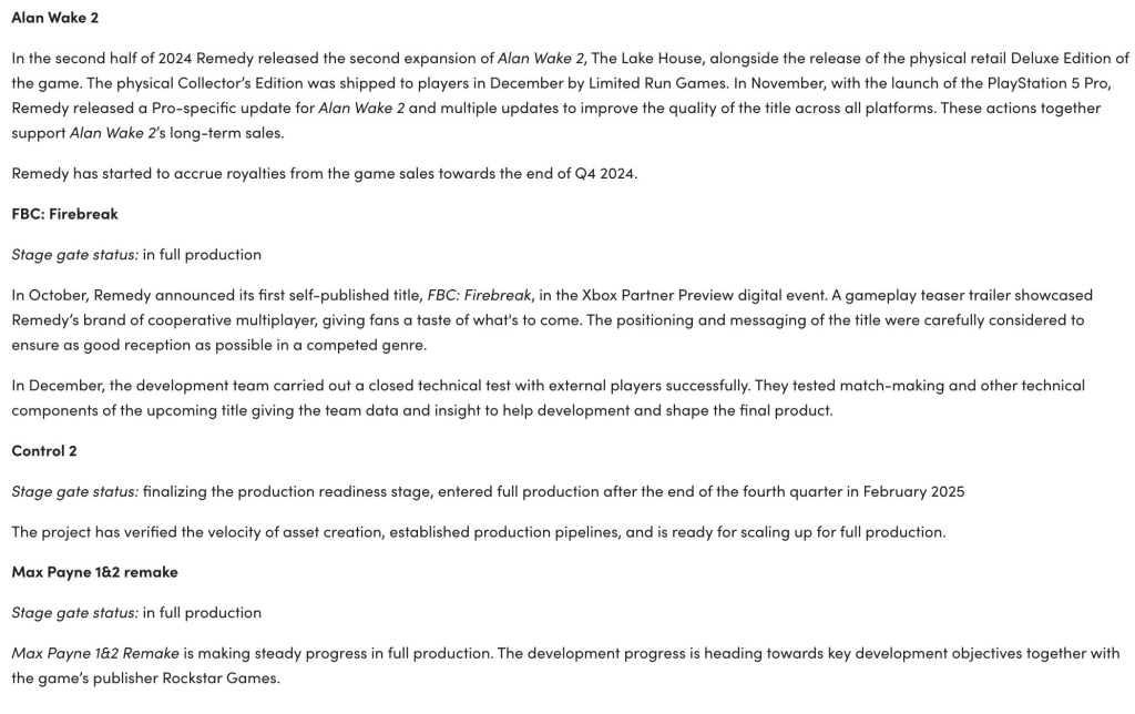 Previously, Remedy launched the physical version of "Soul Killer 2" in the fall of 2024 and released two paid DLCs. These DLCs were very popular with players as soon as they were launched, and many media also gave extremely high standards. Evaluation. These DLCs have promoted the increase in game sales to a certain extent.