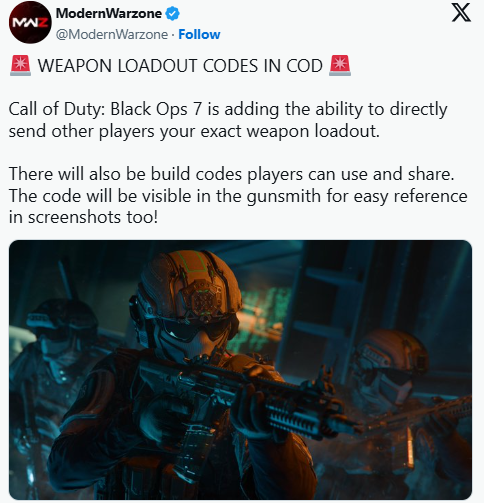 Call of Duty Black Ops 7 confirms the addition of weapon configuration code sharing function