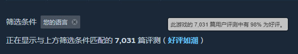 In China, the game also received high praise. Among the 7031 user reviews, the positive review rate is still stable at a high of 98%.