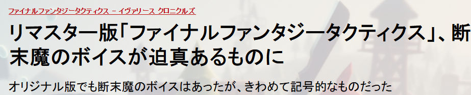 The development team revealed that the full voice recording took more than two years, and the main plot dubbing volume exceeded 100,000 words, and the original voice actor was invited to return to ensure that the voice of classic characters (such as Ramza and Ovilia) was consistent with 28 years ago.
