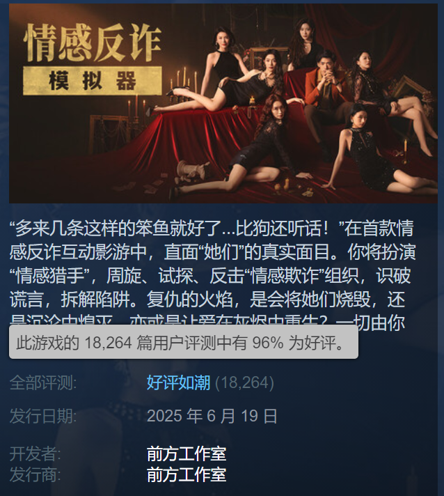 Before the deadline, "Game of Away" was evaluated as "relative reviews" on the Steam platform, and received more than 17,000 user reviews, with a positive review rate of up to 96%. For a newly released film and television game, this result is quite impressive.