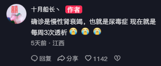 In the follow-up comments, "Captain October" further explained that he suffered from chronic renal failure, that is, uremia, and is currently undergoing dialysis treatment three times a week.