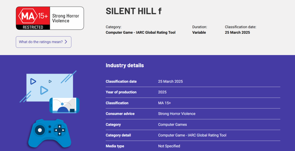 According to foreign media Playground, the rating of "Silent Hill F" in Australia has been confirmed. Surprisingly, the game did not receive the highest rating, but was designated as "MA 15+", which means it is only suitable for players aged 15 and above. Only the two elements of "extreme terror" and "violence" are mentioned in the rating description, and no other reasons are further explained.