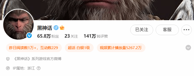 At present, the official account description of the "Black Myth" official Weibo of the game series" and "Unified Official Account of the Black Myth Series (B Station)". In addition, the official avatar of Bilibili was also replaced by Zhong Kui.