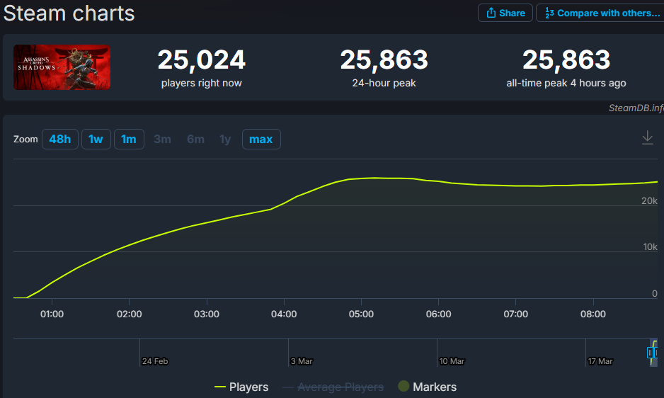 According to SteamDB data, the historical online peak of "Assassin's Creed" on the Steam platform exceeded 25,000 people, and this number is still growing. In addition, this game has topped the list of Steam's global hot-selling products, surpassing CS2 and Steam Deck.