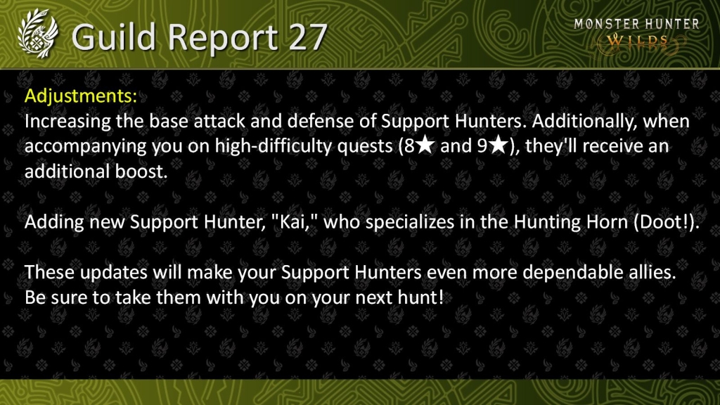 After the update, the basic attack power and defense power that supports the Hunter NPC will be improved. For high-difficulty tasks such as 8-star and 9-star, their values will be further enhanced. In addition, the new support hunter Kai joins the game. He uses the hunting flute and is also the first support hunter to use this weapon in this game. Officials said that support hunters will continue to be optimized and listen to player feedback to improve the gaming experience.