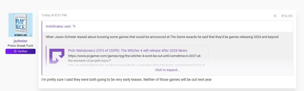 Jason Schreier said on the ResetEra forum that the trailer of "Star: The Heretic Prophet" released at TGA 2024 last year was just a "very early" version. This means that the game is still a long time away from its official release.