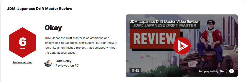 IGN brief review: "JDM: Japanese Drift Master" is an ambitious and sincere tribute to Japanese drift culture, but at present it feels like an unfinished project, and it has been launched hastily, and it is not informed in advance like the early experience stage.