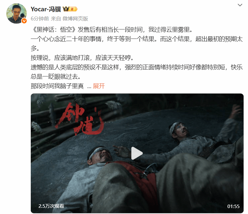 Feng Ji said that after the release of "Black Myth: Wukong", he experienced a period of confusion, but he realized that happiness was short-lived and negative emotions were inevitable. Despite this, he knew that DLC was the expectation of fans, so the team started the production of DLC. However, over time, he reached a consensus with Yang Qi and decided to give up DLC and instead develop "Black Myth: Zhong Kui" - a brand new work that contains new heroes, gameplay, vision, technology and stories.