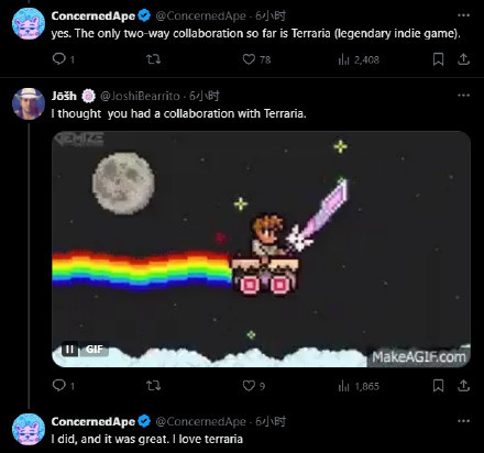 Baron also revealed that except for the two-way cooperation with Terraria, all other cooperations are basically "one-way". He specifically mentioned his collaboration with Terraria: "That was great, I loved Terraria". This cooperation method based on common hobbies rather than commercial considerations is a clear stream in the game industry.