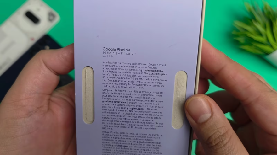 The packaging of the Pixel 9a will continue the design of the Pixel 9 and 9 Pro series, using a full paper material without plastic film. The selected specification will be indicated on the back of the box, with a known screen size of 6.3 inches and a storage space of 128 GB. Sahil Karoul also mentioned that there is another 256 GB version to choose from, with 8 GB of memory and equipped with a Tensor G4 processor.