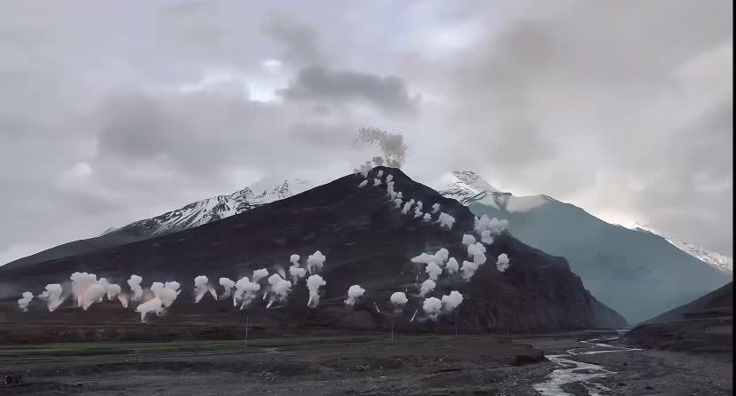 Sometimes, outdoor brand Archaeological Bird joined hands with artist Cai Guoqiang to hold a fireworks show on Chaqionggang Day in the Himalayas. Through the video, we can see that the organizer ignited three-act fireworks on the ridge through gunpowder blasting, and the smoke spread throughout the mountainous area.