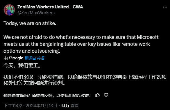 The ZeniMax union organized a small strike in November 2023. This vote was not an immediate strike, but a legal basis for possible future actions. Union members pointed out that there are many problems with the current work environment, including unstable remote work arrangements, forced postponement of personal plans (such as childbirth), and Microsoft outsourcing QA positions without notifying the union.
