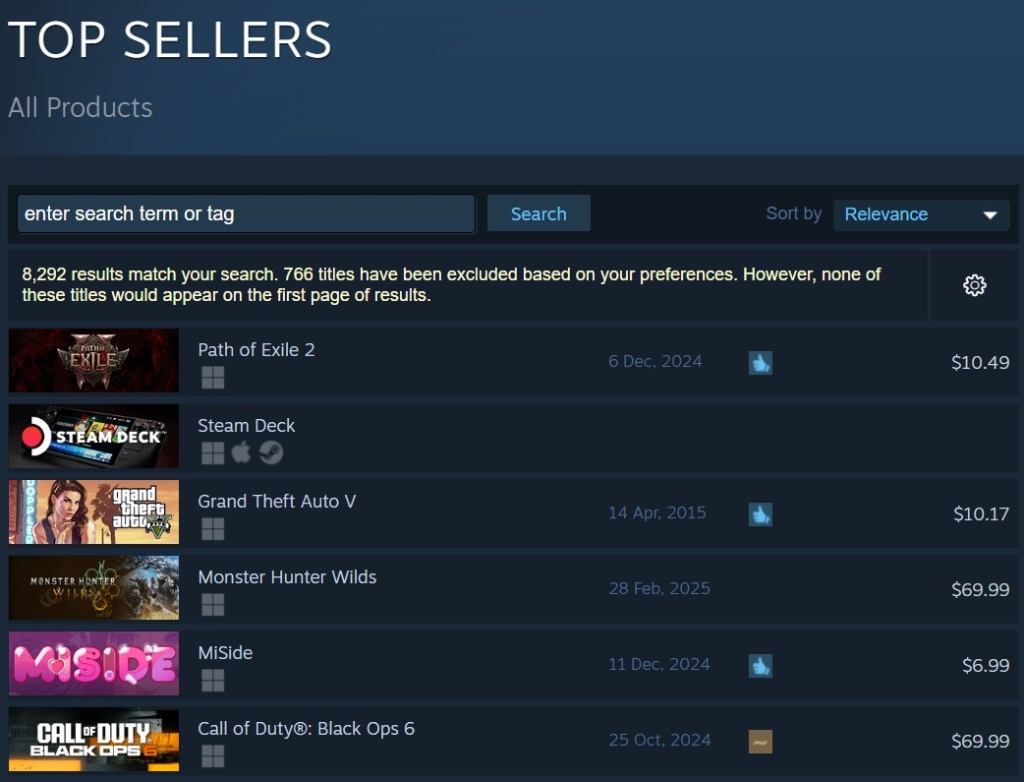 Now, foreign media are surprised to find that although it is still two months away from its official release, "Monster Hunter: Wildlands" has successfully ranked at the top of Steam's best-selling game rankings, ranking fourth. The hardware product Steam Deck ranks third. The current top spot is still firmly occupied by "Path of Exile 2".