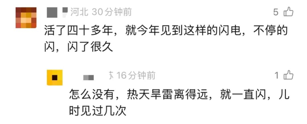 關於看到閃電但沒有聽到雷聲的現象,專家指出,這是正常的氣象過程。當云層內部發生放電時,如果雲系統更厚,聲波會反復反射並衰減多層雲體之間,從而難以聽到地面上明顯的雷聲。