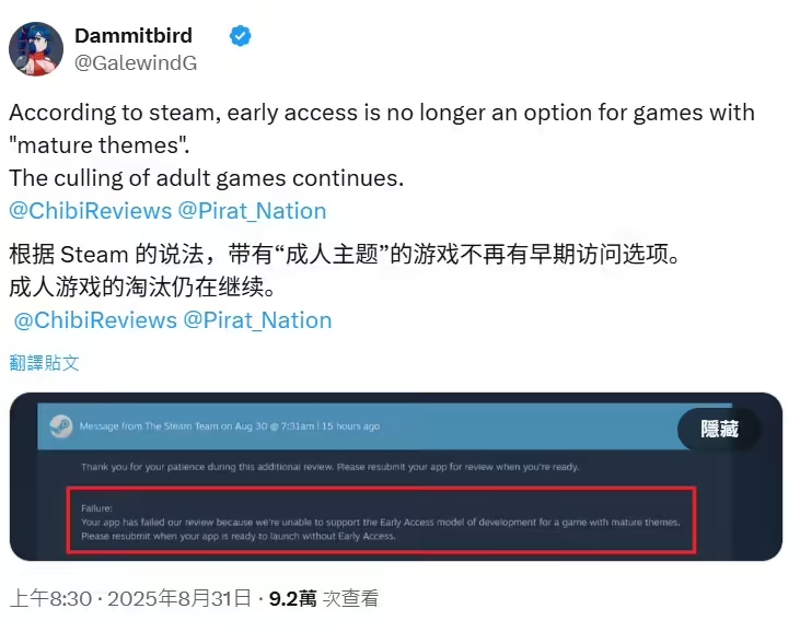 實施的? Steam新規則禁止成人遊戲使用“早期體驗”模式