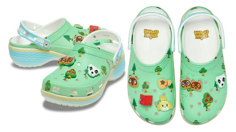 Como parte desta série, eles também lançarão os entupimentos da plataforma "Animal Crossing" para adultos e tamancos clássicos para crianças. Além disso, os fãs podem obter adesivos Magic Jibbitz com base em personagens como Tom Nuke, K.K. Slade, bem como itens como casas e macieiras que podem ser usadas para personalizar Crocs de maneira personalizada.