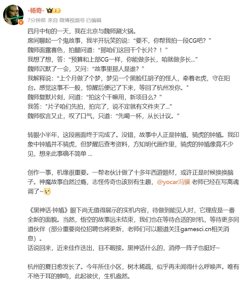 O mito negro · Zhong Kui "não tem conteúdo real que vale a pena exibir no momento. Quando é possível conhecer pessoas, deve ter um visual novo. É claro que a história de Wukong está longe de terminar e também estamos esperando o momento certo para esperar mais colegas (recrutamento para algumas posições importantes) também serão atualizados.