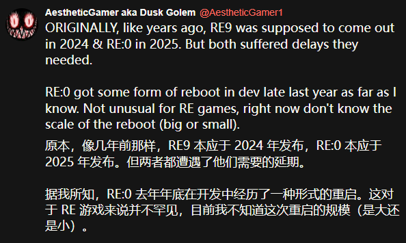 Fontes disseram que, embora o ajuste do plano de desenvolvimento não seja incomum na série de projetos "Resident Evil", o escopo específico do reinício de "Resident Evil 0: Remake" ainda não está claro, e ainda não está certo se é uma grande mudança no plano geral ou um ajuste de otimização do conteúdo local.