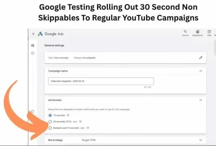 Google недавно проверил новый формат рекламы на платформе YouTube с содержанием «не пропусков» до 30 секунд, что отличается от текущей рекламной рекламы за буферизацией, которая в основном составляет 15 секунд или 6 секунд.