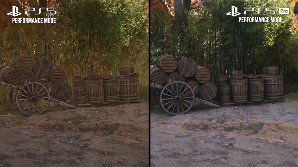 Общество Шумао отметило, что различия в качеством изображения в Assassin's Creed: Shadow »в режиме производительности хозяина особенно значительны. Версия PS5 Pro представляет более деликатный свет и темный переход на поверхности объекта с помощью динамического света и тени, в то время как базовая версия PS5 опирается на предварительно выпеченное освещение, что делает эффект плоским и визуальным эффектом очень подходит для сравнения.