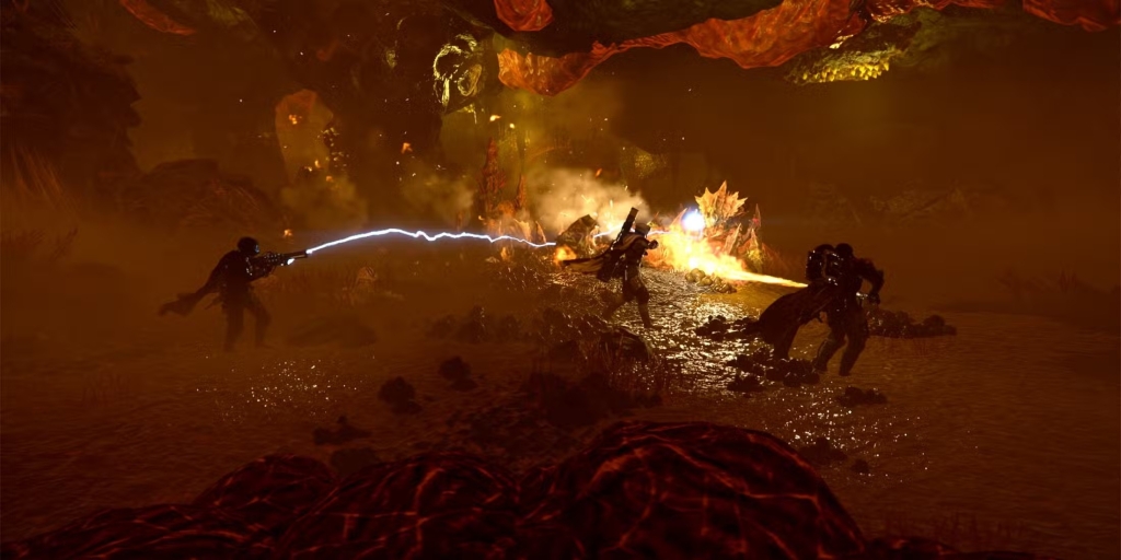 Содержание обновлений гораздо больше, чем это: «Царство справедливости» добавит множество финальных типов врагов, в том числе желчь (желловая шпион) и зарядное устройство (зарядное устройство). Эти враги «проникнут в землю и переместятся к своей добыче, как только они обнаруживают угрозу». Но наиболее привлекательным является новое устройство Dragonroach: «Эта воздушная угроза погрузится, чтобы атаковать неподготовленного адского дайвера и опустить горящую желчь». Описано как «Летающая версия желчного титана» в видео глубины YouTube. Хотя игроки сталкивались с кланами, такими как Screamers, сталкивались с такими кланами, новые враги принесут совершенно разные проблемы.