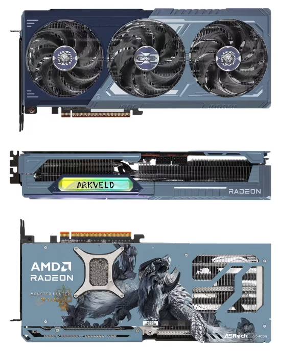 Эта видеокарта имеет ту же основу, что и ASRock RX 9070 XT Steel Legend от ASRock. Дизайн вдохновлен новым миром Дракона с Замком Клинка и Диким Новым Миром в новых работах серии «Странный Охотник» и сочетается с серебром цвета слоновой кости и синей краской. От верхней крышки видеокарты, надписи RGB, задней панели до наклейки оси вентилятора — каждая деталь отражает сильные и напряженные линии дракона с лезвием замка.