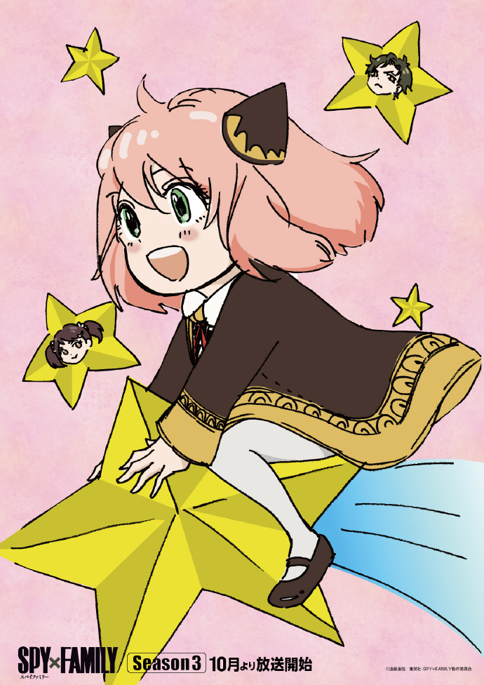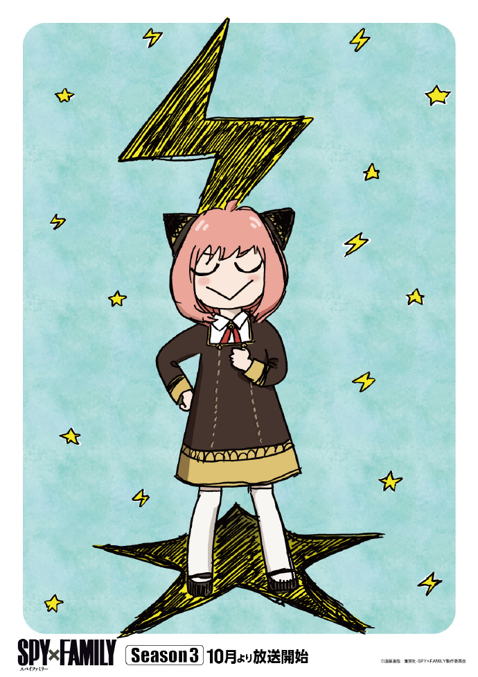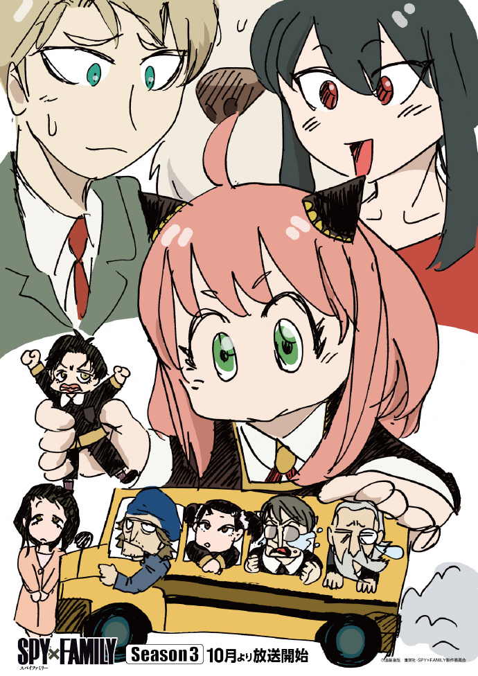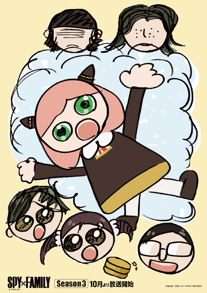 TV动画《间谍过家家》第三季正式公布主视觉图,由角色设计师嶋田和晃操刀,确定将于10月4日正式播出。除官方主视觉图外,多位主要配音演员也同步发布了全新绘制的角色视觉图,其中包括江口拓也与早见沙织所绘制的“大作”。