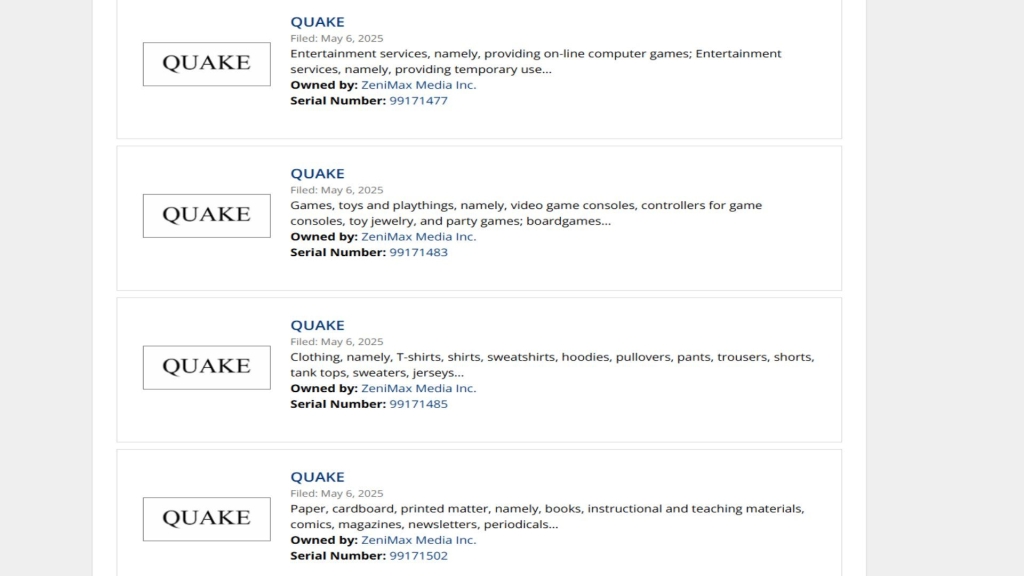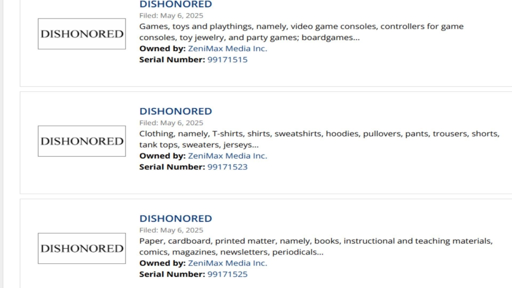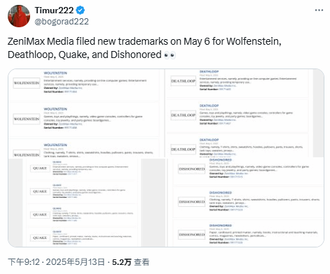 然而网友发现,Zenimax近期突然为《耻辱》《德军总部》《死亡循环》《雷神之锤》四个IP提交了商标申请,此举时机耐人寻味,因为该公司自去年8月以来再无任何商标动态。