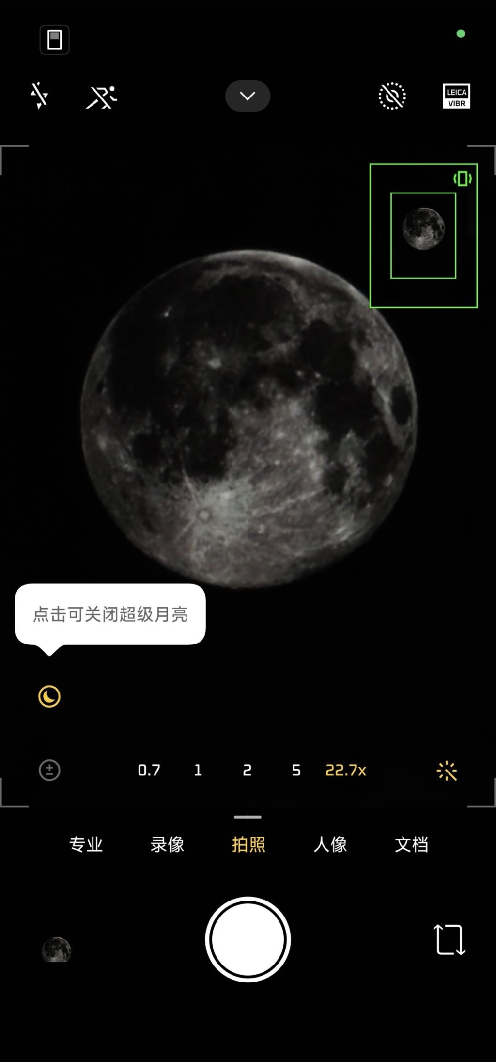 据产品经理介绍,升级后的超级月亮模式实现了自动触发功能,用户无需再像以往那样特意去寻找专门的拍摄入口。在拍摄过程中,用户只需轻轻按下快门,就能轻松获得一张高清且能完美留住夜色的月亮照片,操作过程更加快捷、自然。当然,如果用户不想使用这个模式,也只需简单点击一下,即可轻松关闭,充分兼顾了拍摄的便捷性与用户的自主性,能够满足不同用户在拍摄月亮时的多样化需求。