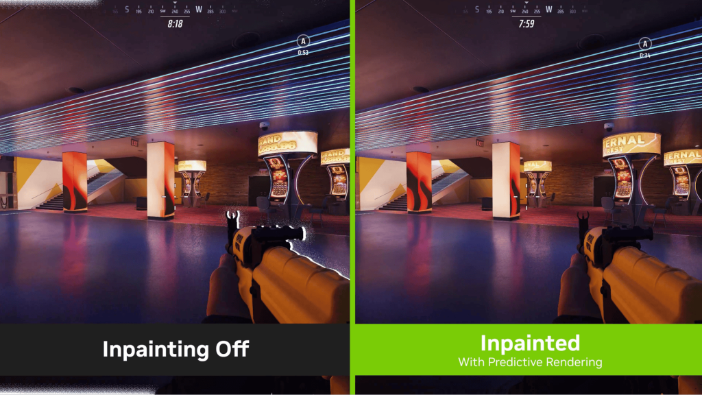 与此同时,NVIDIA Reflex技术也迎来了第二代版本——NVIDIA Reflex 2。全新的Reflex 2引入了一项名为 “Reflex Frame Warp”的新技术,这项技术能够在游戏帧传输至显示器前,依据最新的鼠标输入数据来进行实时更新,从而显著提升响应速度与玩家的操作精确度。简而言之,这项技术可以确保玩家在移动鼠标时的最新位置信息能够被优先呈现在屏幕上,解决了传统主机到显示器延迟高于键鼠到主机延迟的问题,平衡了延迟差,确保画面与操作实时同步,使得玩家能够更迅速地感知并反应游戏内的变化,彻底告别画面延迟。对于热衷于FPS与TPS游戏的玩家们来说,NVIDIA Reflex 2大幅增强了玩家的游戏体验,让玩家尽享 “指哪打哪” 的畅快过程。