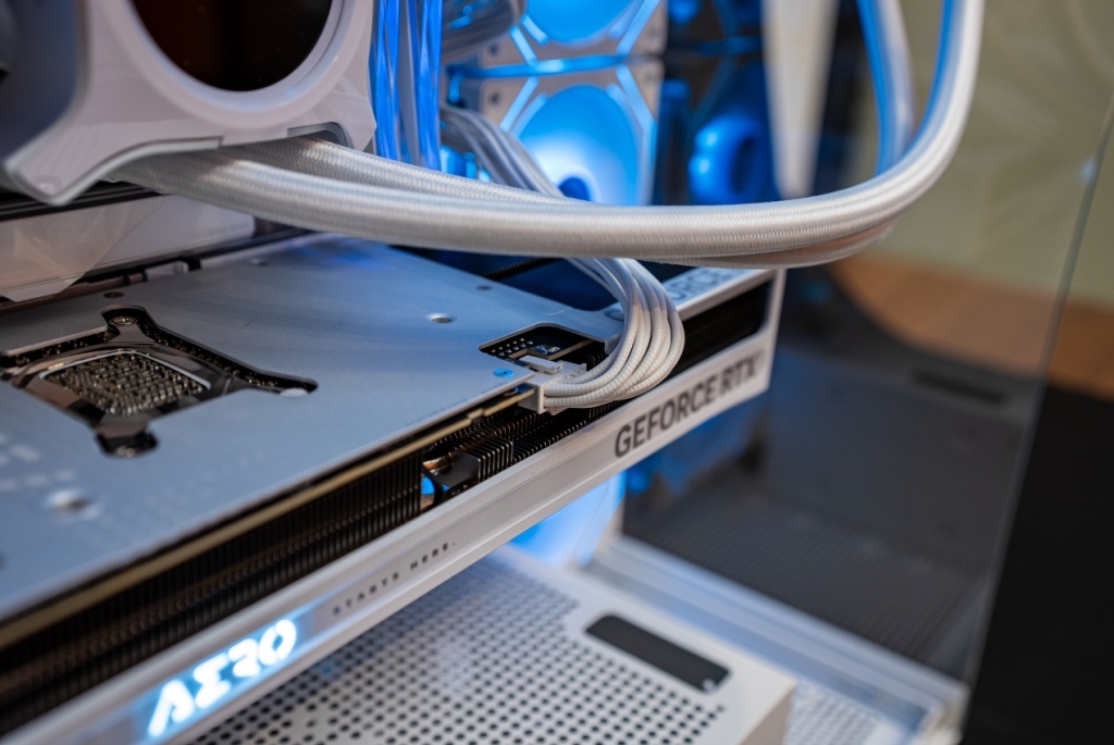 而针对 12V-2x6 电源接口,技嘉创造性地采用下凹式设计,并将其安置于远离显卡边缘的位置,电源线在连接时更加自然顺畅,大幅降低了弯折的可能性,有效减少因电源连接不良引发的安全隐患,为玩家提供更稳定和安全的使用环境。