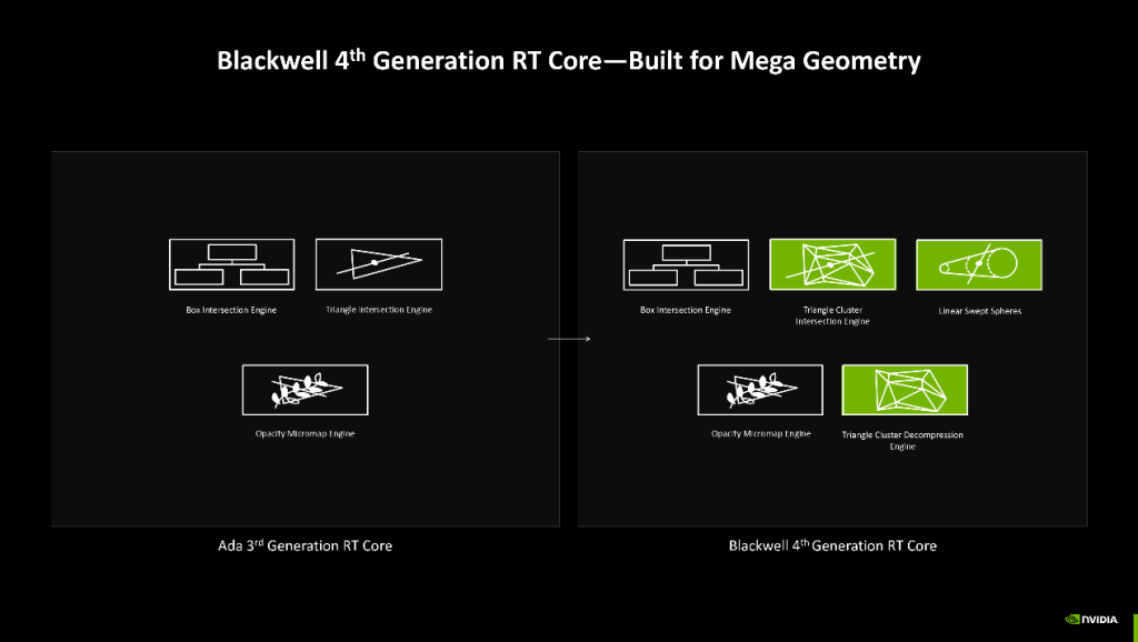 而在游戏和创意领域,Blackwell架构也同样大放异彩。第五代Tensor核心支持FP 4精度模型,使得光线追踪和DLSS技术性能翻倍,从而显著提升游戏画质和流畅度。此外,Blackwell架构通过神经网络着色和优化的三角形簇相交引擎,进一步提高了光线追踪和多边形相交的效率,为游戏开发者提供了更强大的工具。这些强大的技术都齐聚一堂都为RTX 5080雪鹰强大的游戏性能与生产力打下了坚实的基础!