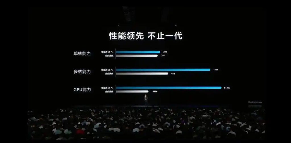 性能方面,MateTV实现跨代升级:CPU单核性能提升490%,多核提升360%,GPU提升251%,NPU提升约300%,RAM翻倍,ROM采用移动端UFS技术,较行业普遍eMMC技术实现代际跨越。与旗舰电视芯片对比,单核性能达6倍、多核近10倍、GPU超10倍,堪称行业革新。