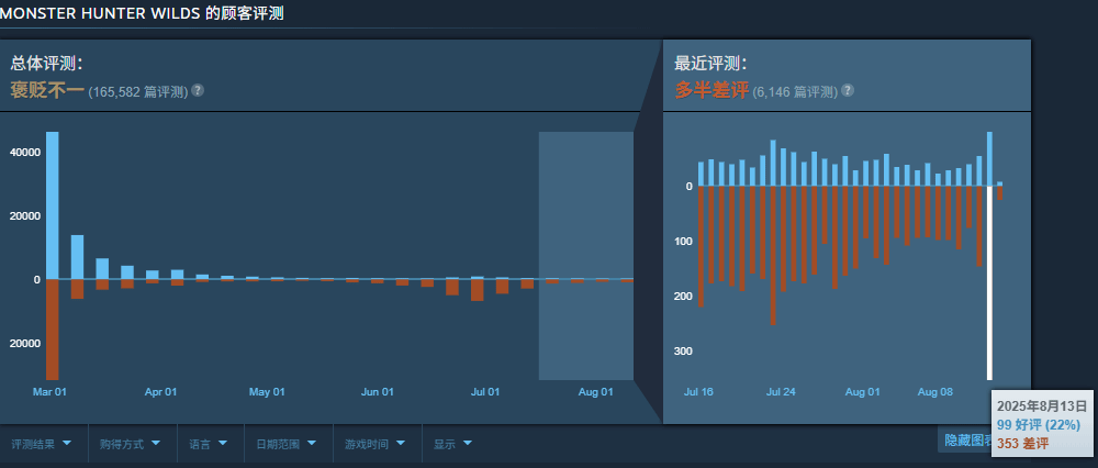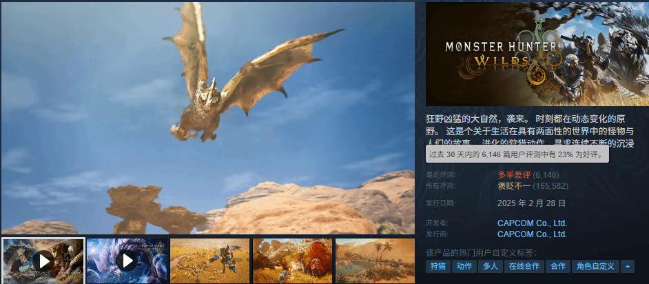 越改越乱!《怪物猎人:荒野》更新反而导致差评更多